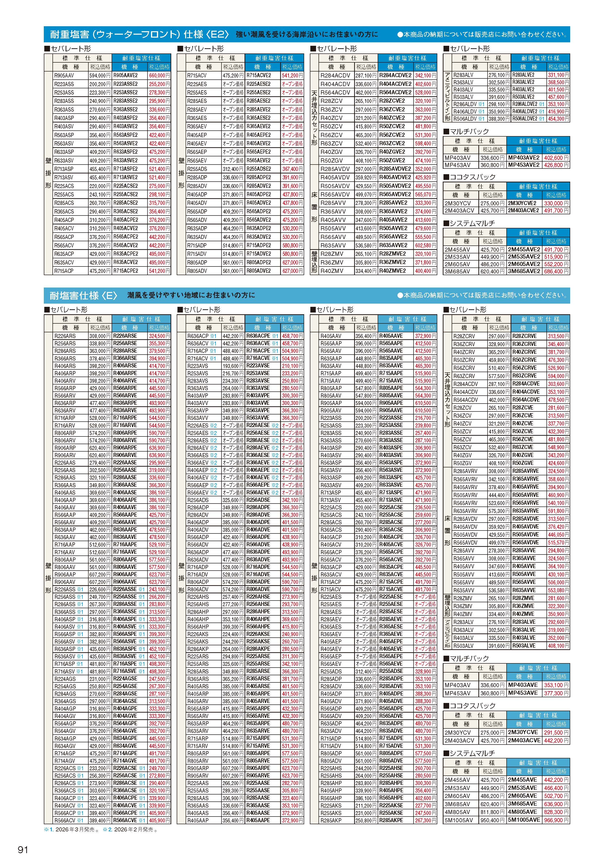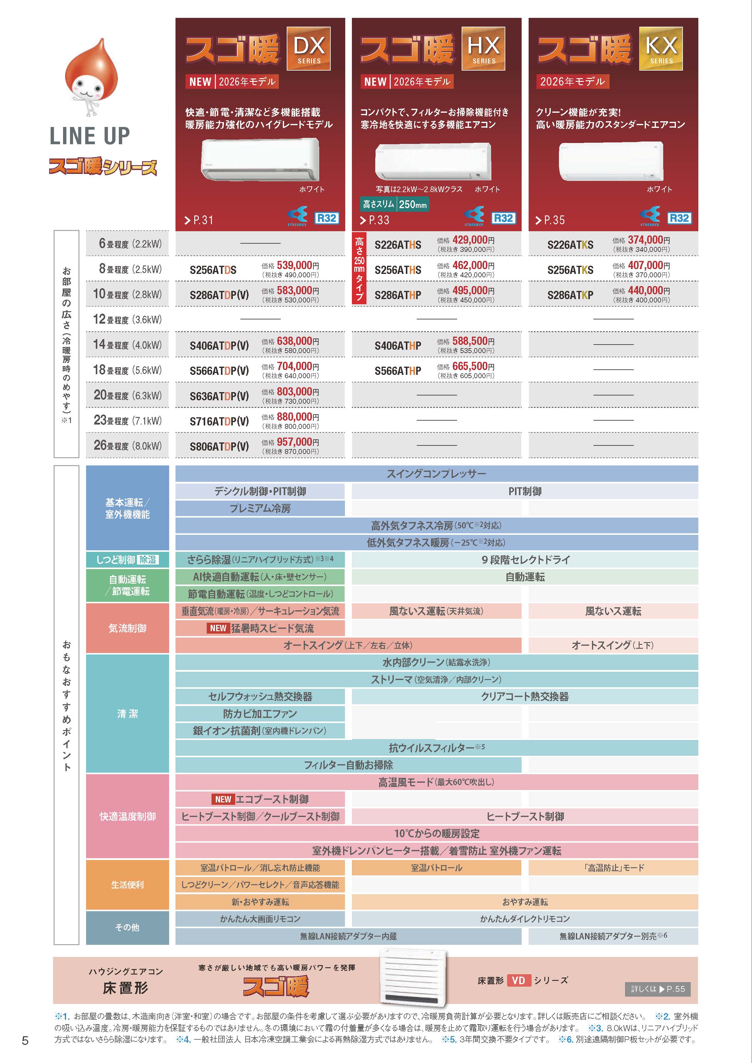 | 形番 | 機器本体価格 | 独自保証 | 目標年度2027年 | 消費電力等 |