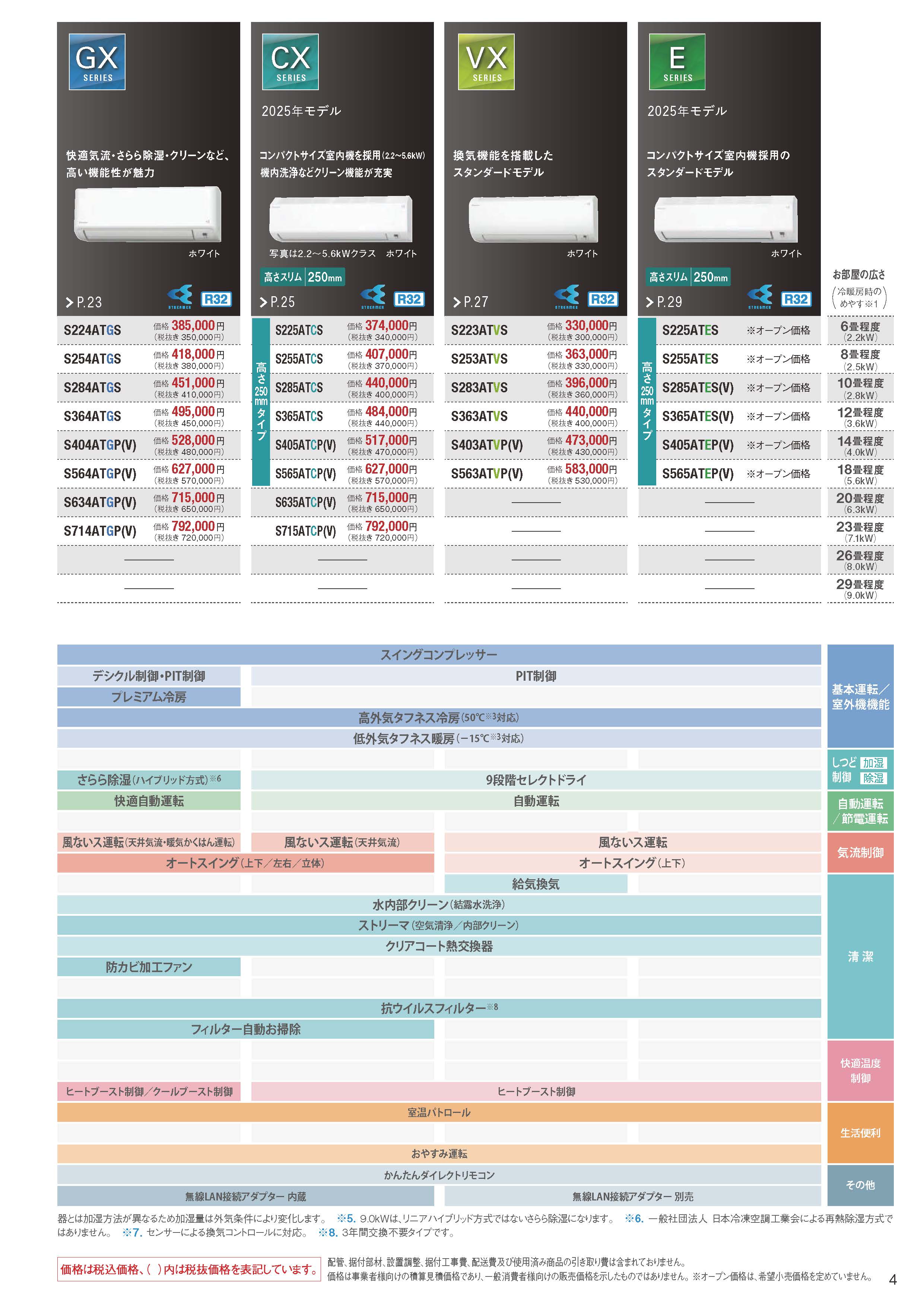 ダイキン壁掛形エアコンGXシリーズ2024年モデル価格表