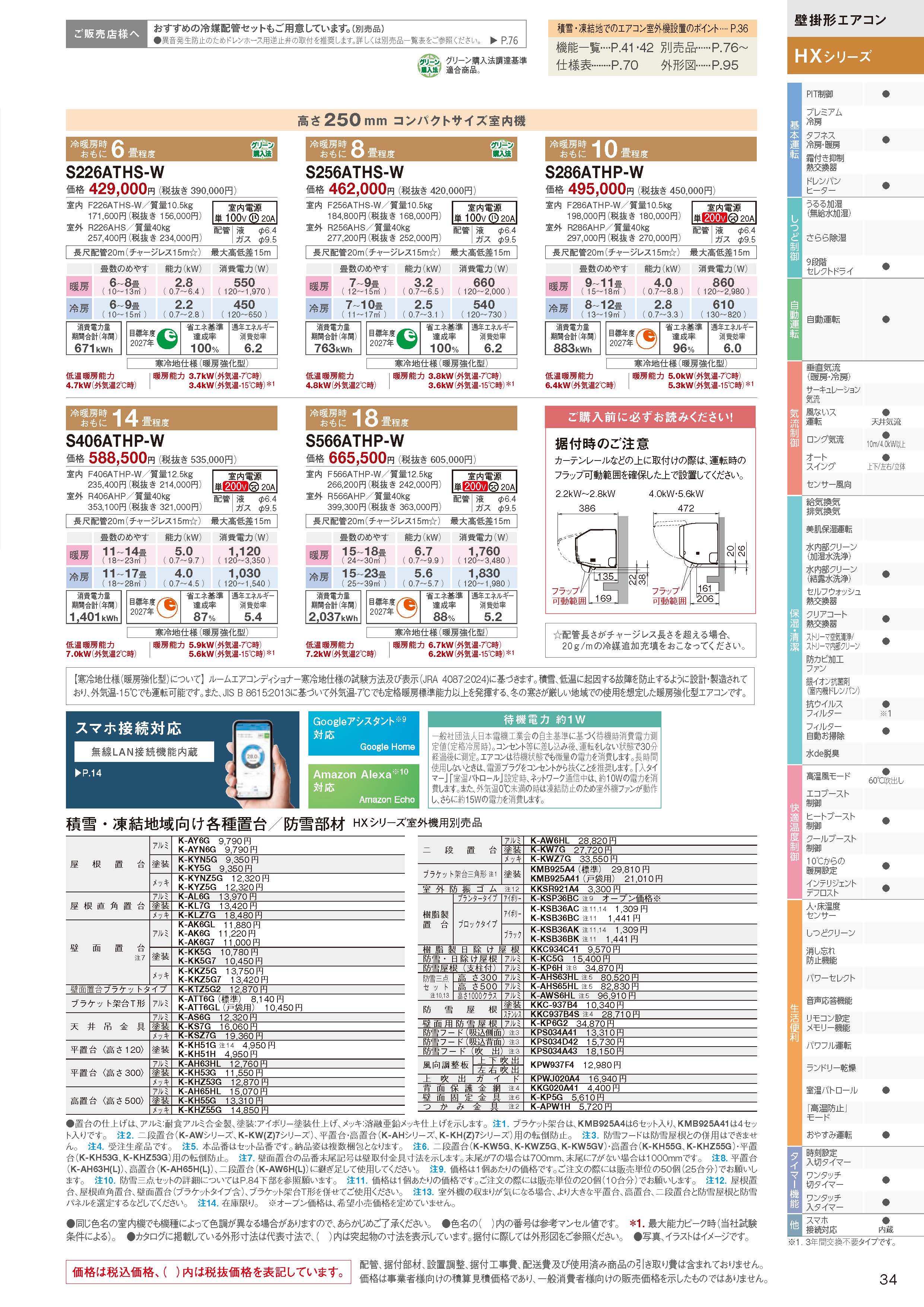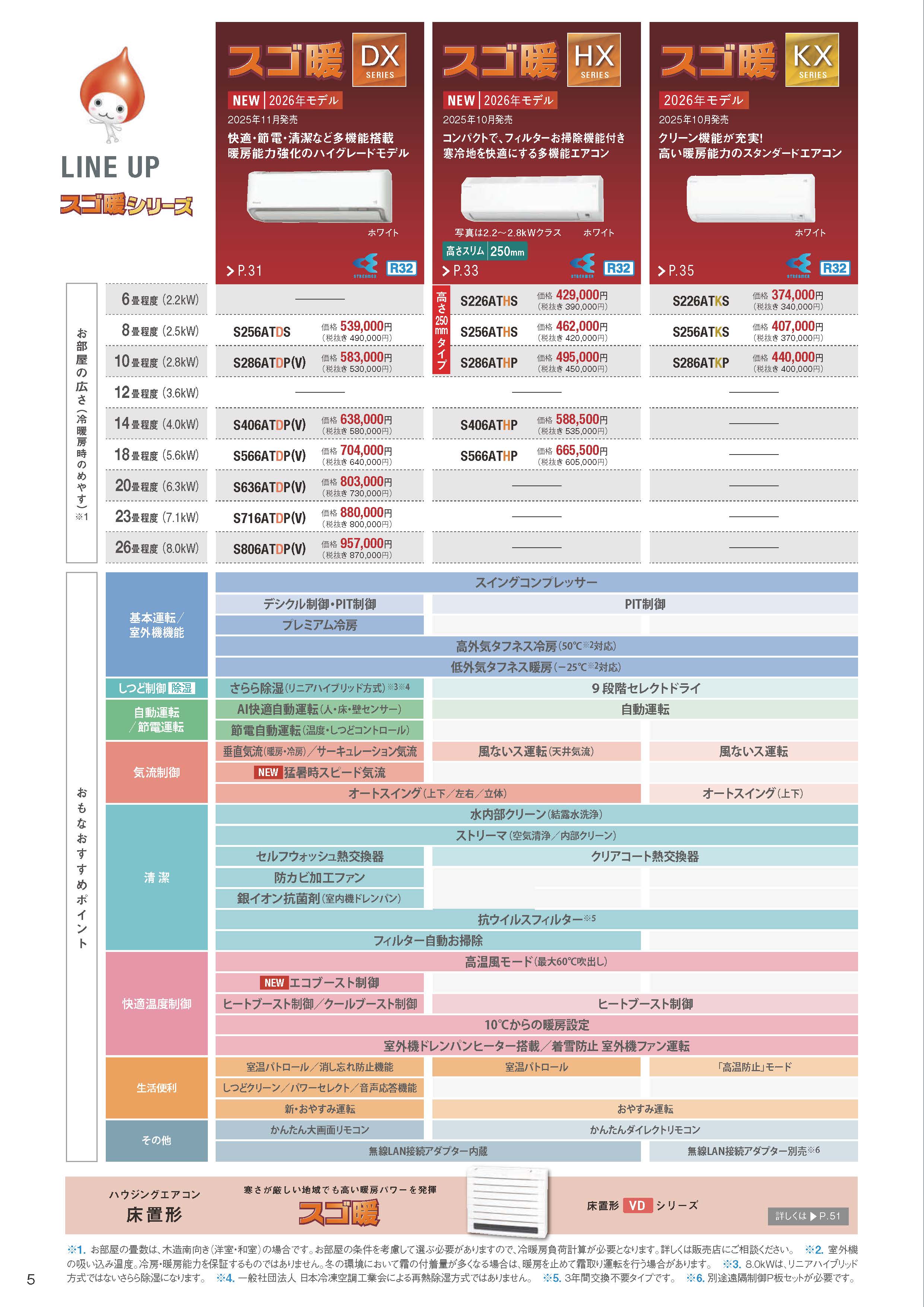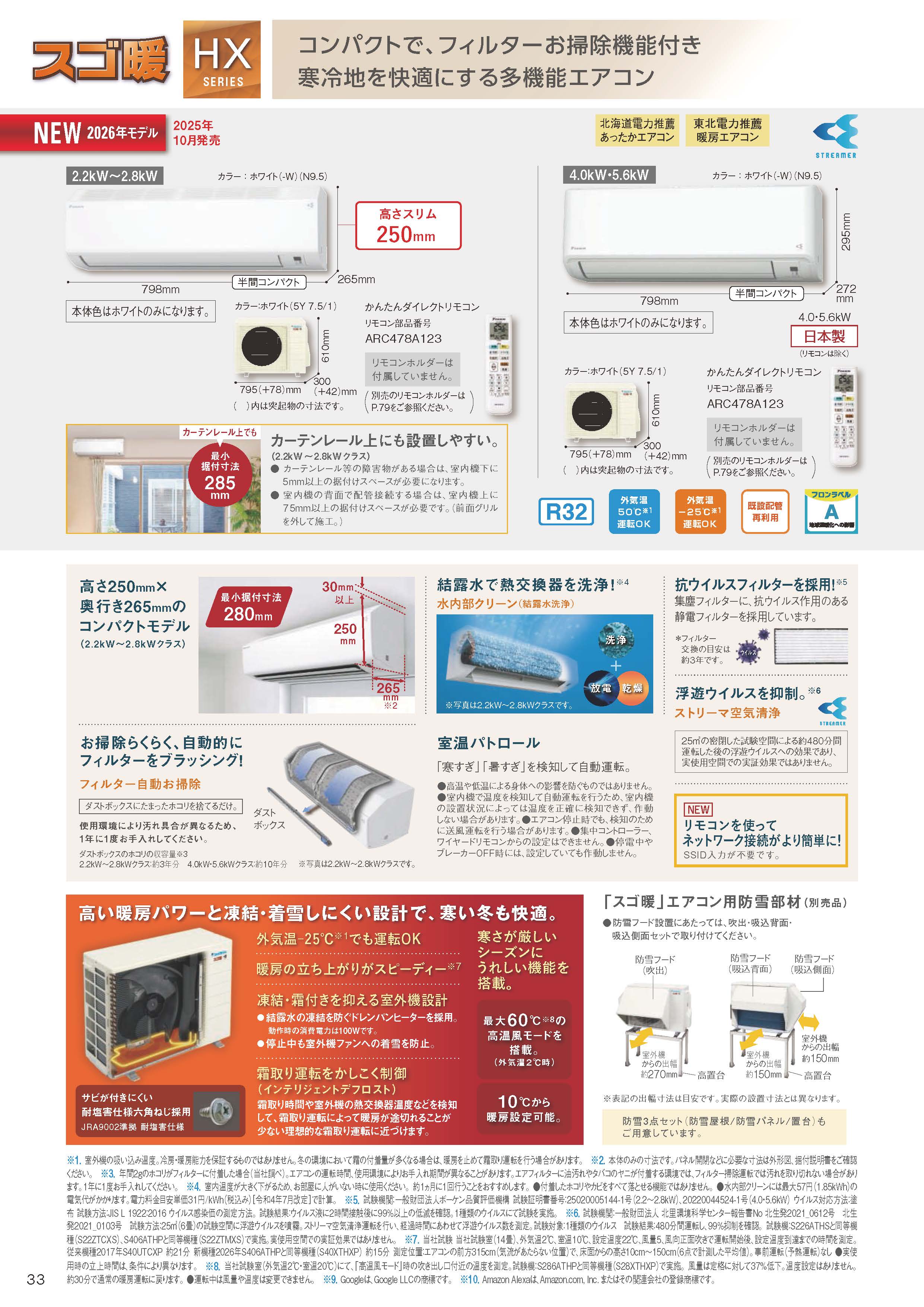 ダイキン壁掛形エアコンHXシリーズ(スゴ暖)2026年モデル価格表