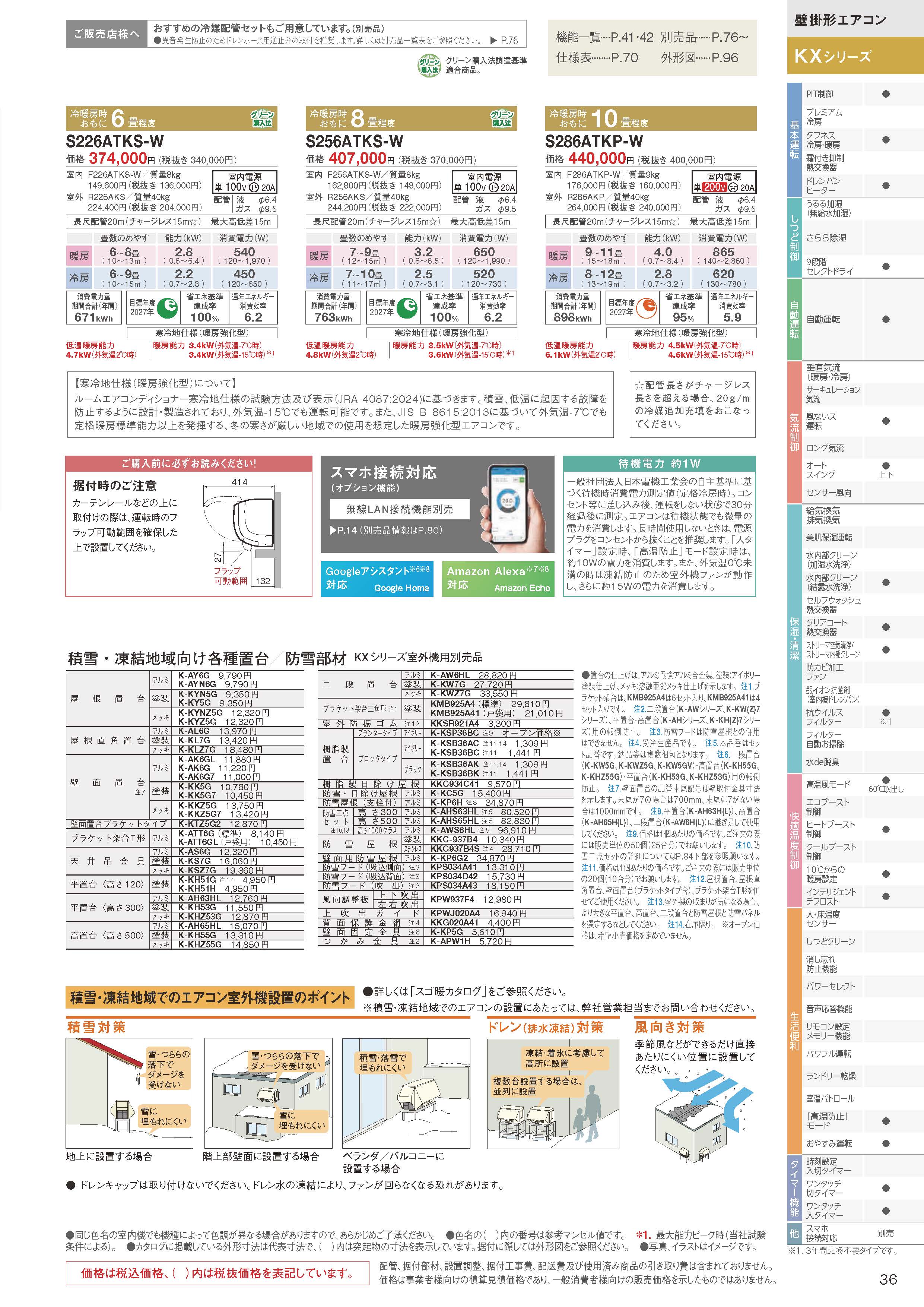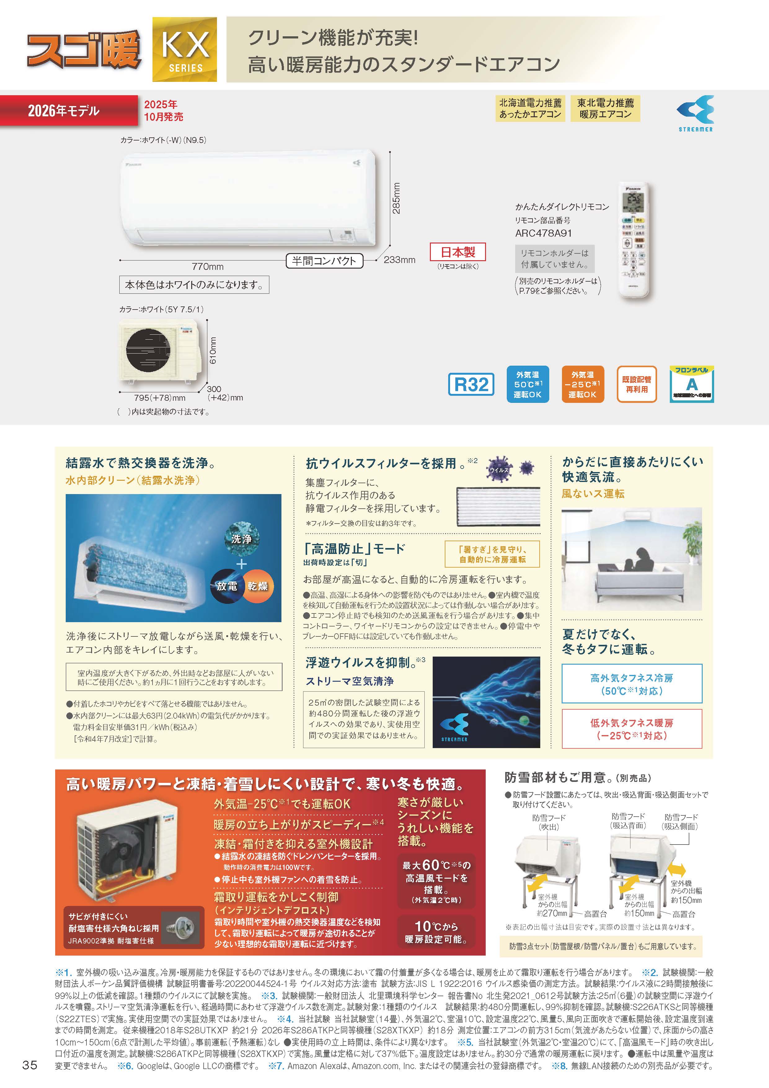 ダイキン壁掛形エアコンKXシリーズ(スゴ暖)2026年モデル価格表