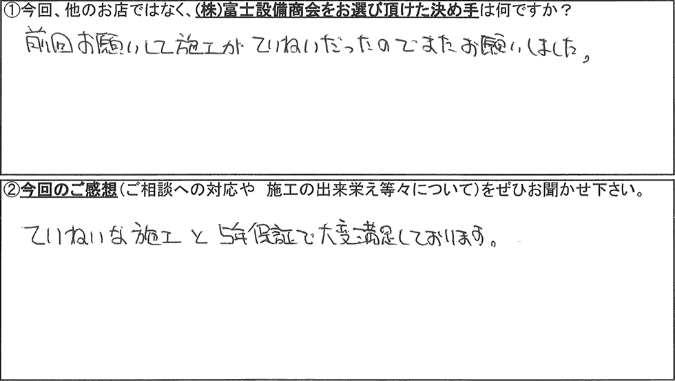 - 富士設備商会を選んだ決め手は?