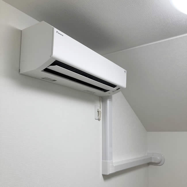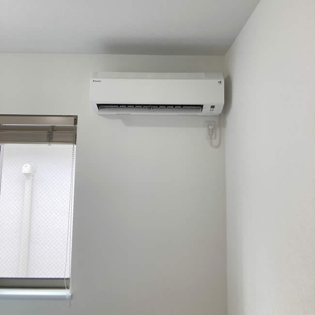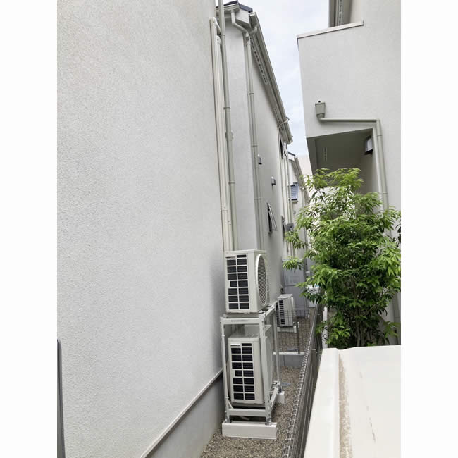 工事の際に玄関上の屋根に乗る事も言って貰えたので、ビルダーへの事前確認が取れた。室外機の配管カバーもきれいに仕上がっており、真空引きも十分な時間を掛けていて、工事も丁寧で良いと思いました。